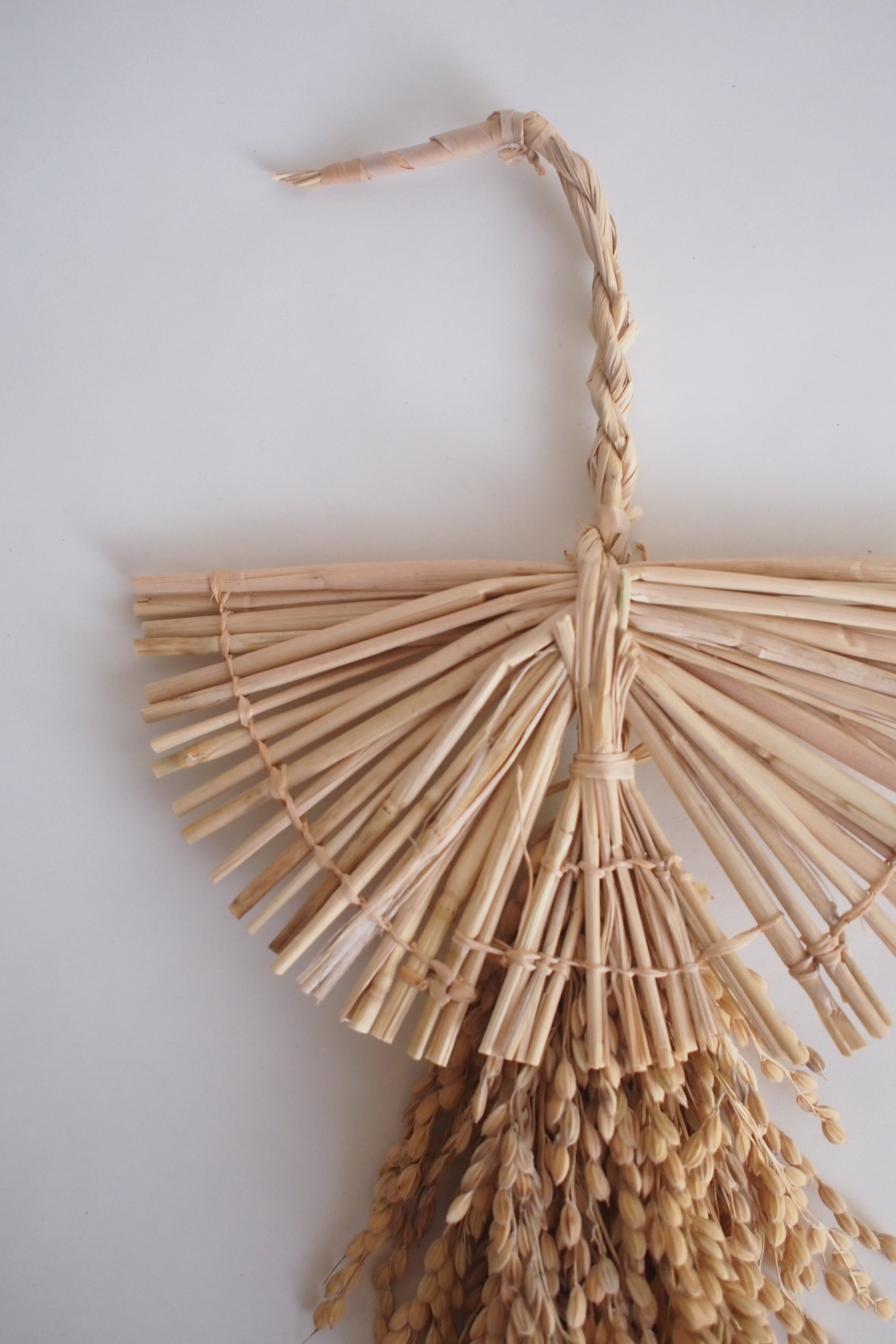 ささげさんの稲藁と稲穂で作った鶴と松、南天のセットです。