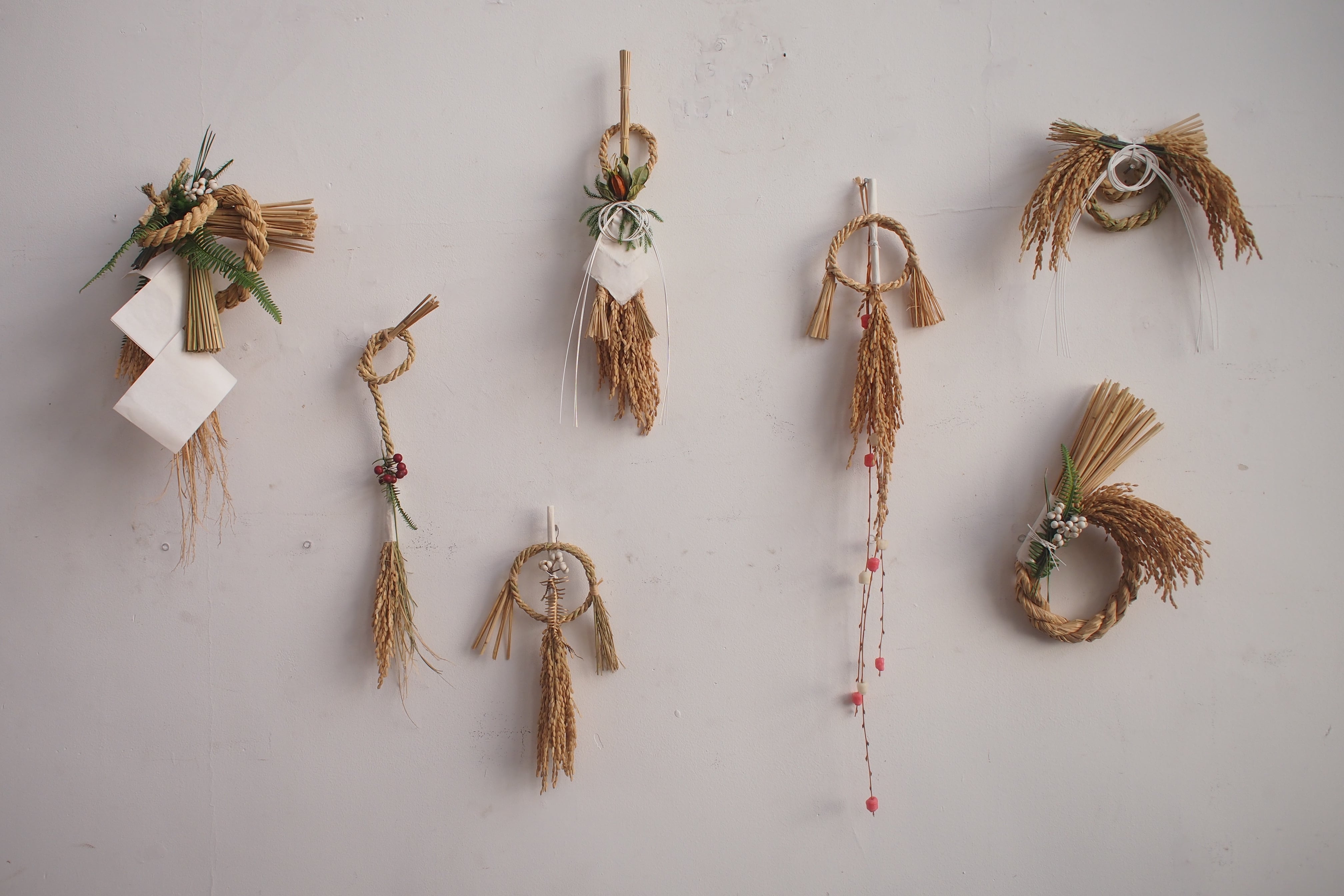 収穫後の稲藁を使用し、一つ一つ丁寧に編んでお正月のしめ飾りを作っています。